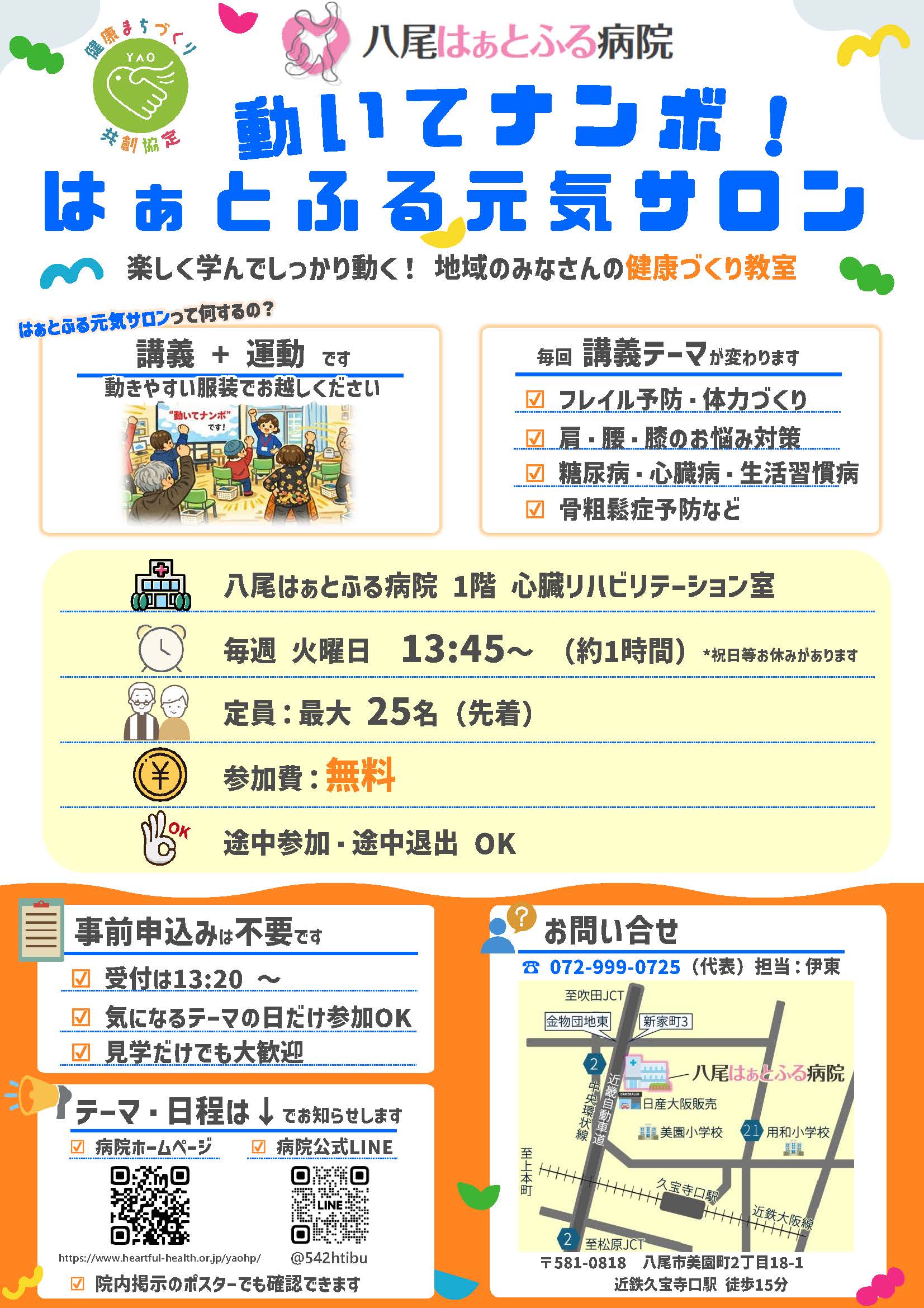 その取り組みの一環として、「動いてナンボ!はぁとふる元気サロン」を開催します。